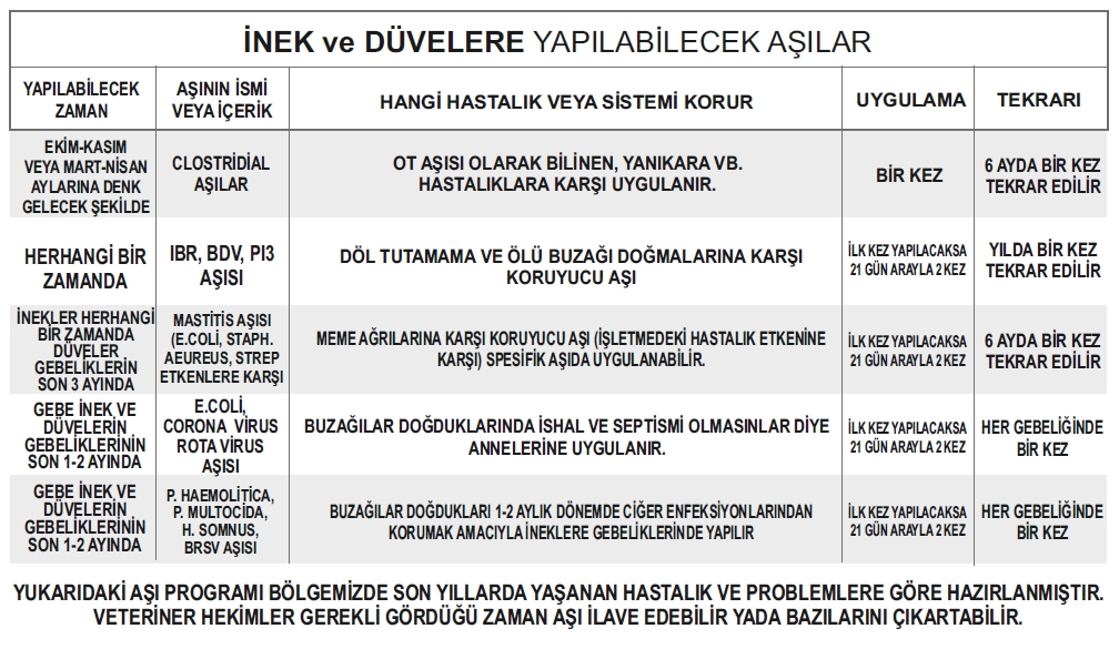 Buzağı, Düve ve İneklerde Aşılama